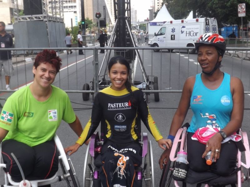31/12/2012 Foi na manhã desta segunda-feira (31) que a joaçabense Aline Rocha concluiu o seu ano de ouro. Era 6h50 da manhã quando foi dada largada da prova da tradicional Corrida Internacional de São Silvestre. Mas, devido à falta de experiência e por ser a primeira vez que a mesma corria a tradicional prova, Aline teve dificuldades para chegar a tempo de se alinhar na largada. Quando ela cruzou a linda de largada ela avistou os demais competidores a aproximadamente 400m a sua frente. Aline não teve tempo para colocar suas luvas, botou força no aro e voo para alcançar as demais atletas. Já na primeira subida, não só alcançou, mas ultrapassou as outras concorrentes. Embalando na reta seguinte, teve tempo para, ainda em movimento, vestir sua luva e seguir na corrida. Na descida da Av. Pacaembu, disparou, atingindo a velocidade de 55,5 km/h. Nesse trecho da prova, um outro corredor cadeirante teve o pneu estourado e sofreu um grave acidente sendo levado para o hospital. Se aproximando do km 6 Aline perdeu uma de suas luvas que acidentalmente caiu de sua mão. Tendo que continuar a prova com luva em apenas uma das mãos. Eventualmente Aline tirava as luvas para poder fazer um toque mais equilibrado. Na subida da Av. Brigadeiro Aline se manteve a frente com uma boa vantagem, e chegou na Av. Paulista extremamente exausta e não consegui levantar a cabeça de tanta dor no pescoço. Mas, com muita emoção cruzou a linha de chegada em primeiro lugar. Aline agradece a todos que torceram e a apoiaram ao longo do ano de 2012.