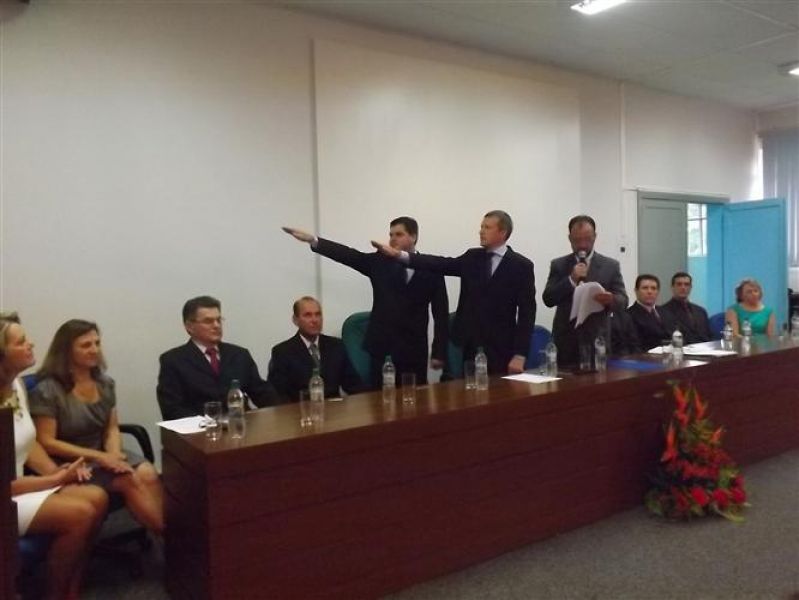 01/01/2013 A posse dos eleitos em Luzerna foi realizada às 9h desta terça-feira (1º) em solenidade realizada no Centro de Eventos São João Batista, o antigo seminário, com a plateia lotando o auditório. A sessão foi presidida pelo vereador Alcir João Denardi (PSD), a terceira vez na trajetória política dele. Foram empossados o prefeito Moisés Diersmann (PSD) e vice-prefeito Juliano Schneider (PSD), que quebraram a hegemonia do PMDB após 16 anos. Em 2011 Diersman presidiu a Câmara e em 2012 foi a vez de Schneider. Ambos saem do Legislativo para atuar no Executivo. Diersman, que era filiado ao PMDB, rompeu com o então prefeito Norival Fiorin, e, após várias tratativas, reforçou a oposição e colocou o nome para concorrer a prefeito juntamente com o presidente da sigla como candidato a vice e obtiveram resultado positivo no pleito.