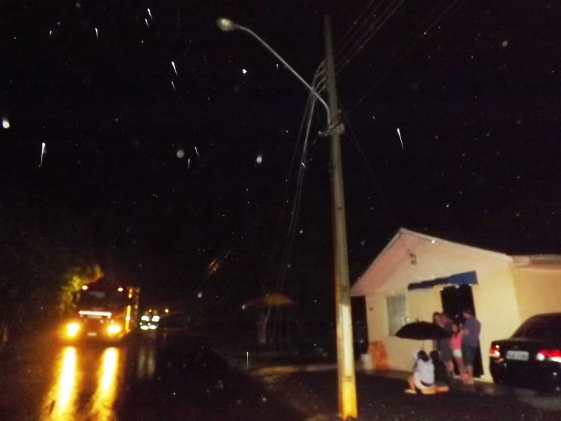 06/01/2013 A combinação de forte chuva acompanhada de rajadas de vento causou estragos na noite deste sábado (05) em Joaçaba. Por volta das 23h, uma árvore caiu sobre a rede elétrica na rua 12 de Outubro, bairro Joviva. Os cabos elétricos foram rompidos e um poste foi ao chão. O Corpo de Bombeiros foi acionado para retirar a árvore e a Polícia Militar na orientação do trânsito, que ficou interrompido na rua. Diversos moradores ficaram sem luz. Equipes da Celesc trabalharam durante toda a madrugada para retomar o fornecimento que aconteceu somente na manhã deste domingo (06). Ninguém ficou ferido.