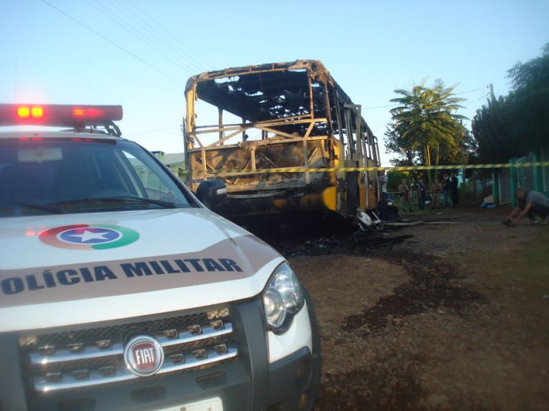 05/02/2013 O município de Chapecó registrou pelo segundo dia consecutivo ataques a ônibus de transporte coletivo. O novo atentado aconteceu por volta das 5h desta terça-feira (05) no bairro Palmital, zona Sul da cidade. Um coletivo ficou completamente destruído. A Polícia Militar está mobilizada em Chapecó, bem como em toda a região, incluindo Joaçaba, onde veículos da empresa Estrelatur estão sendo escoltados em diversas linhas, principalmente à noite. A PM está prestando o apoio em alguns trajetos como forma de prevenir que ataques semelhantes aos que vem sendo registrados em Chapecó se propaguem. O ônibus destruído em Chapecó pertence à empresa Auto Viação Chapecó e estaria transitando quando foi abordado pelos criminosos, que a princípio seriam quatro pessoas armadas e utilizando um veículo Gol de cor branca. Não houve vítimas. Toda a região, inclusive o batalhão da PM de Concórdia está em alerta. Já na madrugada de domingo houve ônibus incendiado e um caminhão que também por pouco não foi consumido pelas chamas em Chapecó.