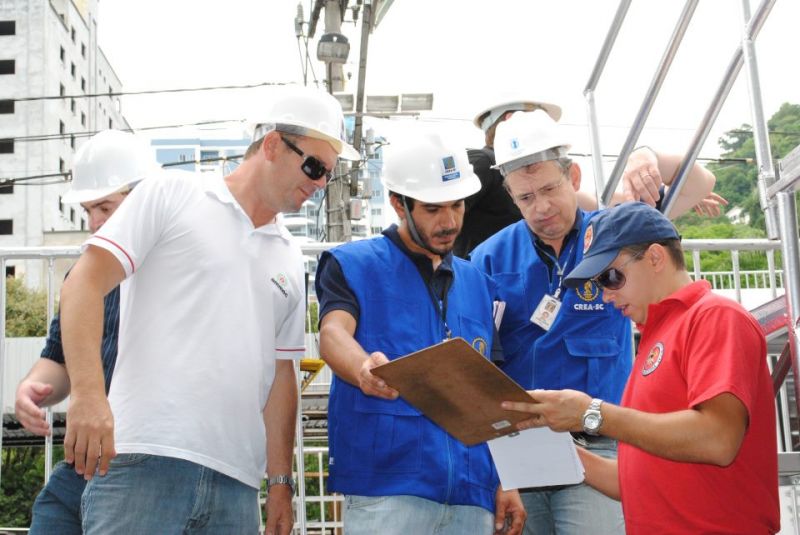 07/02/2013 Visando a segurança das pessoas que vão prestigiar os Desfiles das Escolas de Samba de Joaçaba e Herval d’ Oeste, no sábado (9) e na segunda-feira (11), foi realizada na tarde desta quarta-feira (6) a vistoria dos 144 camarotes e 14 arquibancadas disponibilizadas ao longo da avenida. Participaram representantes da Polícia Militar, Corpo de Bombeiros, Conselho Regional de Engenharia e Agronomia (Crea-SC) e Prefeitura de Joaçaba, além dos responsáveis pela montagem, som e iluminação do palco da festa. A vistoria também foi acompanhada pelo diretor de Patrimônio da Liesjho, engenheiro Diovan Pereira da Rosa.