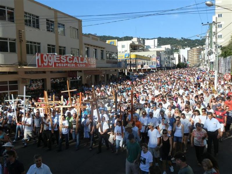 25/02/2013 Um domingo marcado por fé, agradecimentos por graças alcanças e pedidos de bençãos em Joaçaba. Foi assim que milhares de Romeiros, oriundos de vários municípios do Estado e Brasil, participaram de mais uma edição da Romaria Penitencial à Frei Bruno. O público novamente correspondeu com as expectativas da Igreja Católica e da Comissão Organizadora. A estimativa da Polícia Militar é de um público superior a 40 mil pessoas. O evento religioso a cada ano que passa se consolida com uma das mais importantes manifestações de fé no Meio-Oeste.