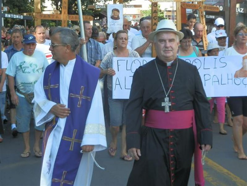 A procissão saiu da Catedral Santa Terezinha às 08h da manhã tendo como destino o Jazigo de Frei Bruno no Cemitério Frei Edgar. Um trajeto de quase 4 quilômetros de muitas orações e reflexões. Pessoas aguardavam ao longo das avenidas XV de Novembro e Caetano Branco para integrar o cortejo. No Cemitério, onde o franciscano está sepultado, padres promoveram celebrações em mais um momento especial da Romaria que teve transmissão ao vivo pela Rádio Catarinense. O tempo bom colaborou com a Romaria e nenhum transtorno foi registrado. Entre os inúmeros religiosos, a presença de Frei Estevão, responsável pelo processo de beatificação de Frei Bruno em andamento desde 2012 no Vaticano.