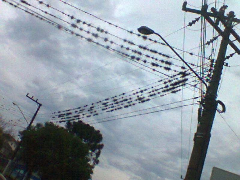 05/03/2013 Moradores do bairro Menino Deus e motoristas que passam diariamente pela avenida Santa Teresinha em Joaçaba reclamam do acumulo de sujeira nos cabos de energia da CELESC. Uma espécie de vegetação tomou conta de fios que cortam a avenida nas imediações da ADM deixando um aspecto visual negativo e ao mesmo tempo gerando preocupação. Em determinados pontos, em razão do peso, os fios chegam estar inclinados. O diretor regional da CELESC, Elói Hofélder, garante que a vegetação não compromete a qualidade de energia. De acordo com ele em breve o problema deverá ser resolvida com a troca de cabos: