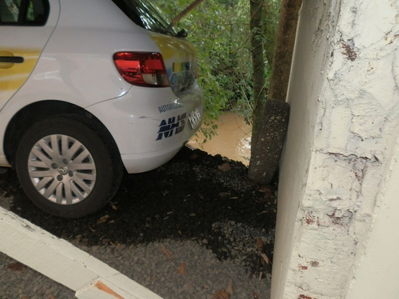 14/03/2013 O telhado de uma garagem desabou parcialmente na madrugada desta quinta-feira (14) e atingiu um veículo em Joaçaba. O fato foi registrado nos fundos de prédio na avenida XV de Novembro, ao lado da Rádio Catarinense. O veículo que pertence a uma empresa de informática ficou coberto de entulhos e correndo o risco de cair no Rio do Tigre. Ninguém se feriu, apenas foram registrados danos matérias de média monta.