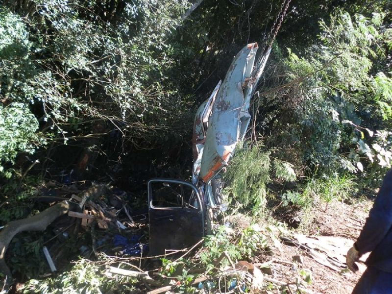 10/04/2013 Um salto para a vida. Assim pode ser descrita a atitude de um motorista na manhã desta quarta-feira (10) em Herval d' Oeste. Era por volta das 07h30 quando um caminhão Mercedes-Benz placas IIW-5303 de Garibaldi (RS), carregado de bobinas de aço, apresentou problemas de freio enquanto trafegava em um descida no km 379 da BR-282, próximo a um motel. Na iminência de acontecer uma tragédia, o motorista de iniciais V.J.L., de 39 anos, não pensou duas vezes e saltou da gabine do caminhão. O caminhão que fazia sentido Erval Velho/Joaçaba ficou completamente destruído após despencar em uma ribanceira às margens da rodovia, no lado direito da pista. O Corpo de Bombeiros foi acionado e conduziu o motorista com ferimentos leves ao Hospital Universitário Santa Terezinha (HUST).