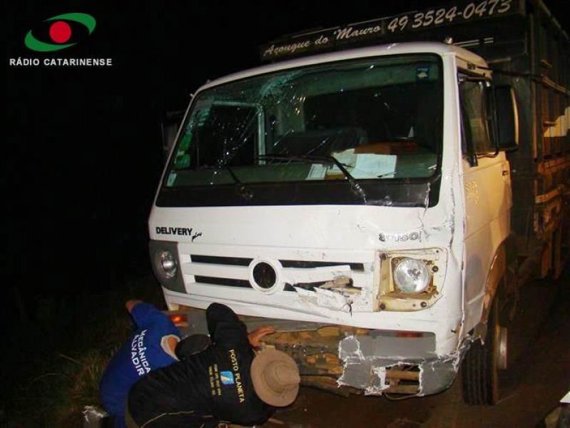 16/05/2013 Um homem ficou gravemente ferido após colisão ocorrida no início da noite desta quinta-feira (16) na rodovia que liga Água Doce a Treze Tílias. Acidente de trânsito, por volta das 18h, no Km 103 da SC-355, em frente a entrada para a linha Heberle, envolveu um VW/Gol placas MED-9362 de Araranguá (SC) e caminhonete VW-8-150 placas MIE-2688 de Água Doce carregada de bois. Segundo informações do motorista da caminhonete, Mauri Trento de 48 anos, ele fazia sentido Água Doce quando no sentido contrário o Gol acabou rodopiando na curva e invadindo a pista contrária, vindo a bater a lateral direita na frente da caminhonete. Na caminhonete estavam também dois homens na carona, ambos bateram a cabeça no para-brisa. O motorista do carro, Marcos Lopes de Araújo, de 28 anos, ficou preso às ferragens e foi retirado pelo Corpo de Bombeiros de Água Doce. A vítima foi encaminhada em estado grave, com suspeita de traumatismo craniano, ao Hospital Universitário Santa Terezinha (HUST) de Joaçaba. Os caronas da caminhonete, apesar de estarem conscientes, também foram levados ao HUST para exames e raio-x, haja vista a pancada na cabeça. Os bombeiros voluntários de Treze Tílias também prestaram apoio na ocorrência. A Polícia Militar Rodoviária de Ibicaré submeteu o motorista da caminhonete ao teste do bafômetro que nada acusou para a ingestão de álcool. Após os levantamentos os veículos foram retirados da pista e o tráfego normalizado. Marcos Lopes de Araújo está na Unidade de Terapia Intensiva (UTI) do HUST.