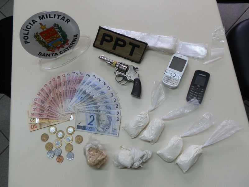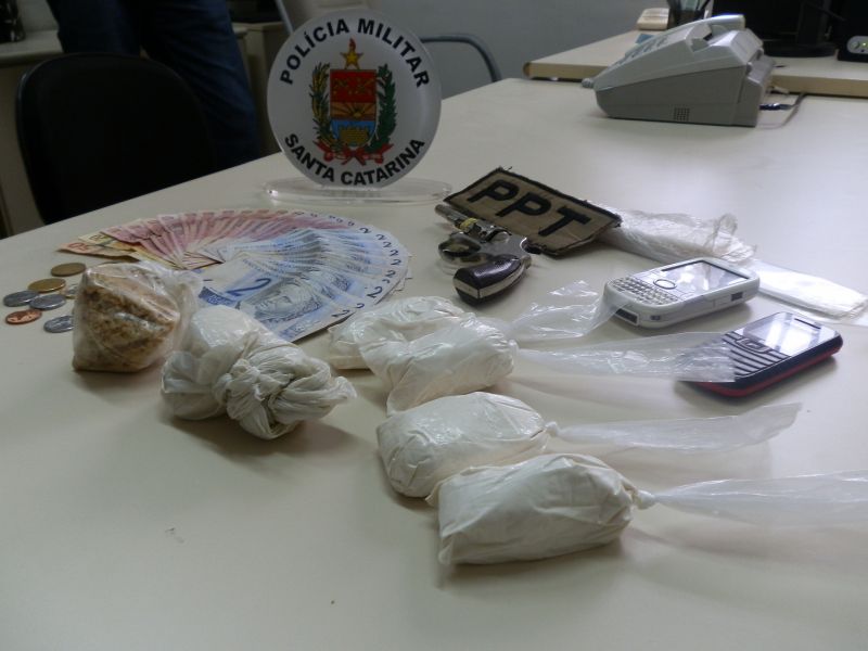 22/03/2012 Policiais do Pelotão de Patrulhamento Tático (PPT) prenderam em Joaçaba no início da tarde desta quinta-feira (22) um jovem com grande quantidade de drogas. A prisão aconteceu por volta das 12h no terminal rodoviário de Joaçaba. Alexssandro Pascoal, de 18 anos, natural de Juquiá-SP, carregava em uma mochila 251 gramas de cocaína e uma pedra pesando 82 gramas de crack. Ele também portava um revólver calibre 22, sem munição.