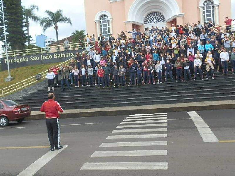 até às 21h quando encerra a participação. A superintendente salienta que, além de integrar a comunidade, a intenção é que a população crie o hábito de praticar atividades físicas. O registro das atividades pode ser feito pelo telefone da FMEC (3521-3234) ou através do ponto de registro na praça da prefeitura. Ao término os dados serão encaminhados ao SESC Joaçaba, que por sua vez enviará para São Paulo. A abertura da programação contou com a participação de alunos da escola municipal Clara Zomkowski do bairro Flor da Serra. Conforme a diretora, Rosana Heberle, foram 75 crianças de 4 e 5 anos que há três anos participam consecutivamente do Dia do Desafio, que é realizado há quatro anos. Ela completa que à tarde haverá atividade com alunos e os profissionais que atuam na escola no período vespertino.