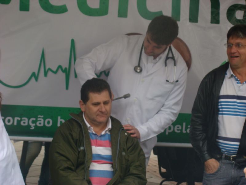 08/06/2013 O movimento intenso de consumidores nas ruas de Joaçaba neste sábado (08), reforça a projeção otimista que a Câmara de Dirigentes Lojistas (CDL) faz de vendas no comércio para o Dia dos Namorados. A expectativa é de um incremento de 4,5%, mesmo índice que está sendo projetado pela Federação Catarinense dos Dirigentes Lojistas (FCDL). Na praça Adolfo Konder, em frente à prefeitura, a CDL em conjunto com o SESC, foi desenvolvido o projeto “Unoesc Abraça”. Acadêmicos e professores das disciplinas de Odontologia, Enfermagem, Educação Física e Medicina oferecem á comunidade diversos serviços e repassam informações a respeito da formação profissional em cada área.