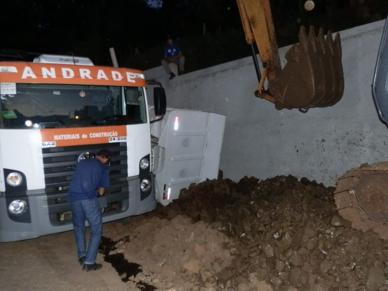 23/03/2012 Um caminhão basculante tombou no final da tarde desta sexta-feira (23) em Herval D’ Oeste. O acidente aconteceu por volta das 18h30min na rua 31 de março, ao lado da 2ª Companhia de Bombeiro Militar. O motorista não se feriu. Conforme o proprietário da empresa, Juceli Andrade, o caminhão que estava carregado com cascalho prestava serviço ao quartel e capotou logo após ter completado a carga. Ele acredita que tenha havido problema na parte mecânica na caçamba. O trânsito ficou interrompido totalmente por aproximadamente meia hora, até a retirada do veículo, que segundo Andrade, é novo e tem menos de 30 dias de uso.