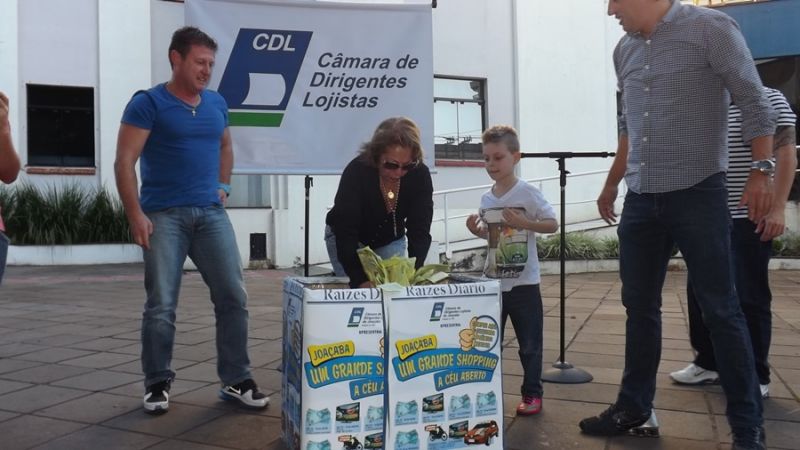 06/07/2013 Na tarde deste sábado (06) foram conhecidos os quatro primeiros ganhadores da promoção “Joaçaba Um Grande Shopping a Céu Aberto”. Em parceria com a empresa Raízes Diário, a Câmara dos Dirigentes Lojistas (CDL) realizou o primeiro sorteio que pode ser acompanhado ao vivo pelos consumidores na praça Adolfo Konder em frente a prefeitura. Na urna todos os cupons que foram distribuídos pelos lojistas durante esta primeira etapa da promoção.