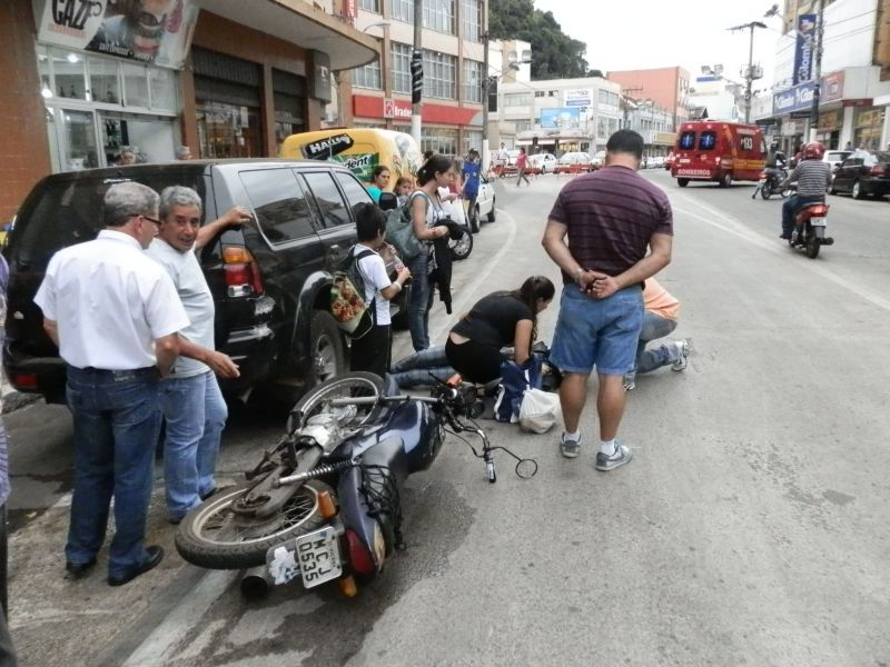 26/03/2012 Uma motociclista sofreu acidente de trânsito ocorrido por volta das 18 horas desta segunda-feira (26) na avenida XV de Novembro em Joaçaba, em frente ao Xico Loterias. A vítima conduzia uma motocicleta Honda CG-125 placa MCJ-0535 de Macieira (SC), conduzida por S.A.O., 31 anos, quando outra moto teria cortado a frente chegando a atingi-la. Desequilibrada, a motociclista acabou se chocando com uma caminhonete Mitsubishi Pajero placas DFO-1946 de Joaçaba que estava estacionada.