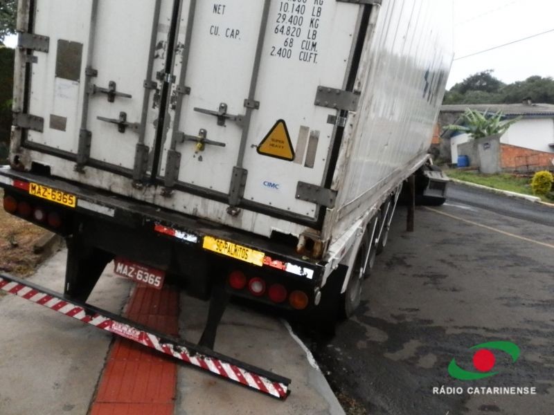 A empresa proprietária acionou um guincho que promoveu a retirada da carreta carregada com carne de frango. A carga, que iria para o Porto de Itajaí, está avaliada em R$ 250 mil.