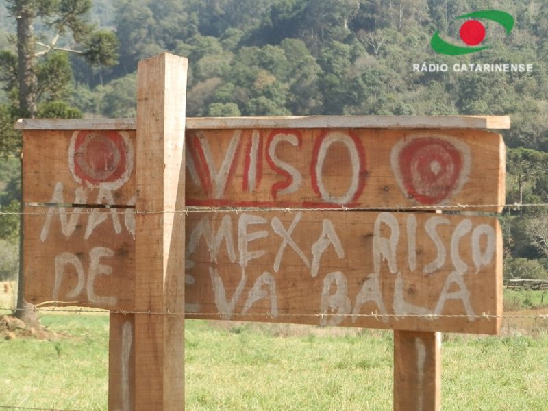 07/08/2013 Enquanto muitos agricultores cobram manutenção de estradas, em uma comunidade no interior de Joaçaba a polêmica foi instalada após a fixação de uma placa que faz um alerta: “Aviso: Não mexa, risco de levar bala”. Na manhã desta quarta-feira (07) a Central de Jornalismo da Rádio Catarinense recebeu a informação de um motorista que transitava em linha Ficanha quando se deparou com a placa às margens da estrada geral, transformada em um verdadeiro lago devido ao acúmulo de água da chuva que não tem para onde escoar. Escoltados pela Polícia Militar, os profissionais foram até a comunidade. Cerca de cinquenta metros antes de chegar no centro comunitário de Linha Ficanha constatamos a existência da placa de madeira estaqueada na divisa de uma propriedade com os dizeres na cor branca contornadas em vermelho. Em contato com alguns moradores, a reportagem foi informada que o proprietário da terra – que não será identificado - impede que a água seja desviada para não invadir sua lavoura. O volume de água foi tanto que na madrugada desta terça-feira o trânsito teve que ser interrompido no local. A polêmica causa receio entre os moradores da linha Ficanha que preferem não se manifestar para evitar animosidade. No local ficou evidente a necessidade de um sistema de drenagem eficaz que não venha a prejudicar o produtor, e muito menos moradores e pessoas que passam pela estrada geral.