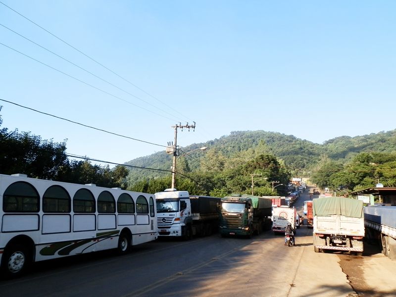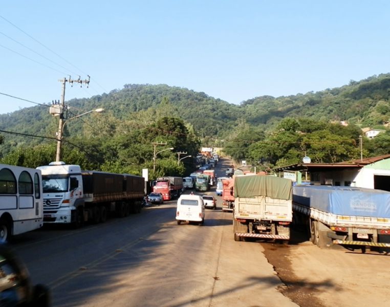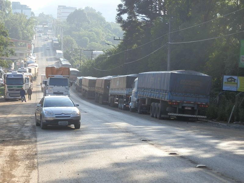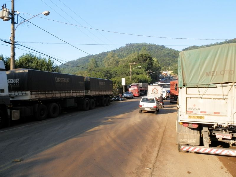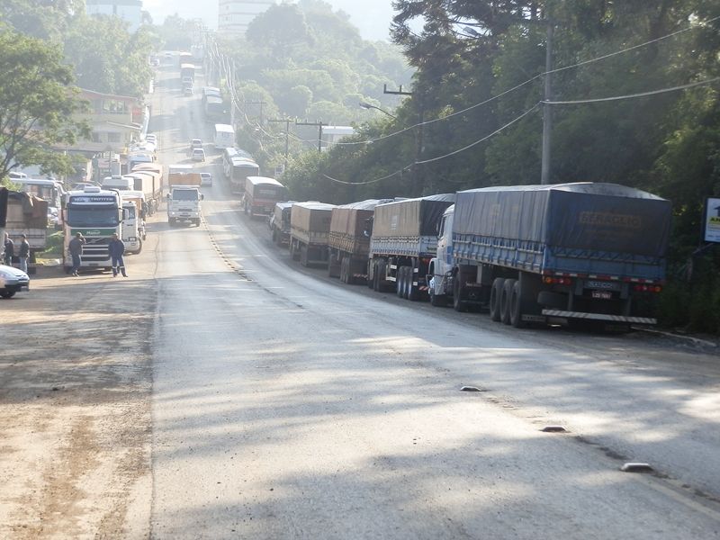 Caminhões que aguardam para descarregar, em fila, nas duas margens da avenida, estão provocando transtornos. Muitos deles manobram na pista, parando desta forma o trânsito nos dois sentidos. A reportagem da Rádio Catarinense esteve no local e constatou a situação.