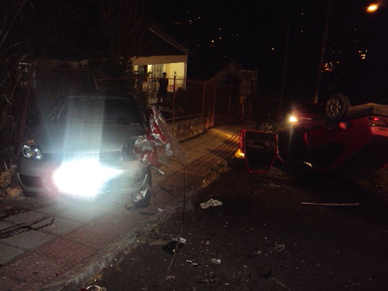 23/08/2013 A Polícia Militar foi informada por volta das 3h30 desta sexta-feira (23) de um acidente na rua Senador Euzébio, centro de Herval d’ Oeste. No local os policiais constataram que se tratava de uma colisão seguida de capotamento com feridos. O veículo VW/Passat com placas MBE-0459 de Herval d’ Oeste, conduzido por um homem de 31 anos, se chocou contra um Renault Clio com placas MGX-8774 de Herval d’ Oeste que estava estacionado, de propriedade de uma mulher de 32 anos. O Passat ainda atingiu a residência de uma mulher de 62 anos. A PM verificou que o motorista do Passat estava com a carteira de habilitação vencida há mais de 30 dias, além de embriagado. O teste do bafômetro acusou 1,07mg/l de ar expelido. No veículo estava na carona uma mulher de 24 anos que foi conduzida em estado grave ao Hospital Universitário Santa Terezinha de Joaçaba. O veículo foi recolhido e feitas as notificações. O condutor do Passat foi preso e conduzido à Delegacia de Polícia onde foi autuado em flagrante.