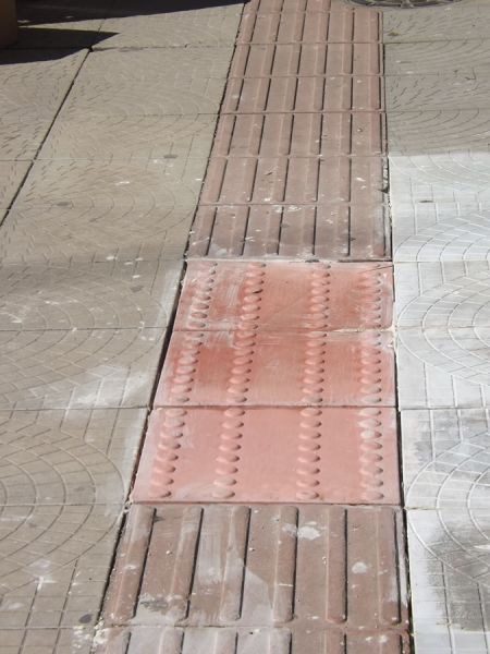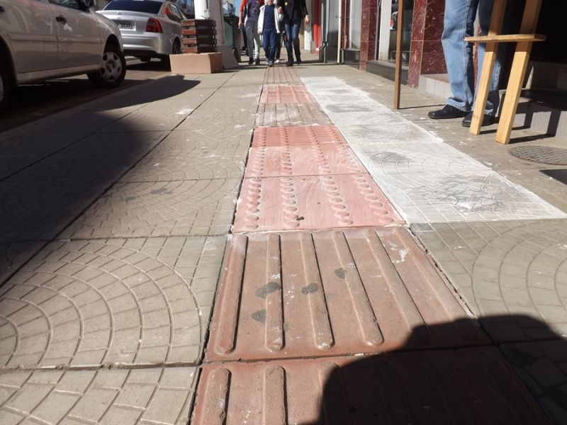 Outro detalhe que chamou atenção da reportagem da Rádio Catarinense é o piso tátil, um grande aliado das pessoas com deficiência visual e baixa visão. A sinalização tátil no piso pode ser de dois tipos: de alerta ou direcional. O de alerta, conhecido pelo formato de "bolinhas", tem como função alertar a pessoa com deficiência de que, à frente, há algum obstáculo, uma escada, uma rampa, a porta de um elevador, o rebaixamento de uma calçada ou um desnível, como uma plataforma de embarque e desembarque. Já a sinalização direcional, que tem linhas verticais, serve para orientar o trajeto e deve ser usada em áreas de circulação. A aplicação deve indicar o caminho a ser percorrido, funcionando como uma trilha. Em frente ao prédio da Rádio Catarinense a empresa misturou os dois tipos de pisos, o que pode gerar confusão para os deficientes visuais.