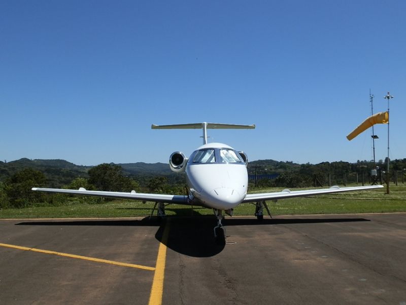 08/10/2013 A terça-feira (08) foi movimentada no Aeroporto Santa Terezinha de Joaçaba. Quatro jatos particulares desceram na pista no início da manhã. Dos jatos trouxeram um grupo de empresários Americanos que vierem conhecer a Celulose Irani em Vargem Bonita. Um terceiro trouxe empresários e diretores da ADM e o quarto um homem que veio a Joaçaba com fins particulares.