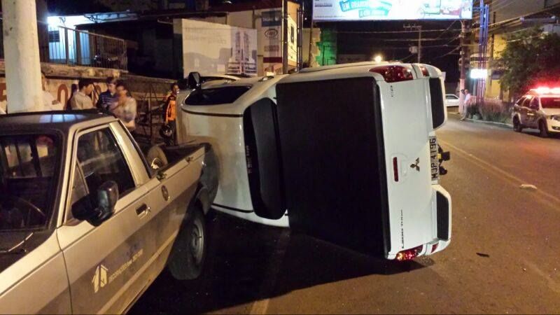 19/10/2013 Uma caminhonete bateu em um carro estacionado e capotou na noite desta sexta-feira (18) no centro de Joaçaba. O acidente ocorreu por volta das 23h30 na Avenida Santa Terezinha, nas proximidades da empresa LCL Eventos. Colisão envolveu uma caminhonete Mitsubishi Triton com placas MJP-4196 de Treze Tílias que atingiu a traseira e a lateral esquerda de um Gol com placas de Manoel Viana (RS) que estava estacionado. Devido ao forte impacto a caminhonete capotou e quase atingiu também um Ford Pampa que também estava estacionado no lado contrário da pista. O condutor da Mitsubishi, de iniciais G.J.B., de 59 anos, se recusou a fazer o teste do bafômetro. Diante disso ele foi preso em flagrante por embriaguez ao volante. Ele ainda resistiu à prisão e ofendeu os policiais militares na tentativa de intimidá-los. Em seguida fugiu do local do acidente e retornou mais tarde. Durante o atendimento da ocorrência o trânsito ficou congestionado nos dois sentidos. O Gol teve danos materiais consideráveis. O veículo pertence a um jovem de 18 anos.