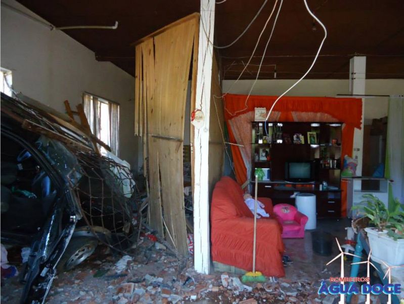 28/10/2013 Um grave acidente de trânsito foi registrado na tarde desta segunda-feira (28) no Centro de Água Doce. A ocorrência foi por volta das 13h30 na rua Anita Garibaldi. O motorista de um veículo Fiat Strada com placas de Água Doce invadiu uma residência. Os bombeiros foram chamados e resgataram o condutor de iniciais JFVB, de 67 anos, que ficou preso nas ferragens. Ele foi encaminhado ao Hospital Universitário Santa Terezinha de Joaçaba com suspeita de traumatismo craniano. Os danos materiais na residência foram consideráveis. O imóvel foi isolado. Segundo os bombeiros, as duas famílias que moram no local foram orientadas a não permanecer na casa, haja vista que um dos pilares de sustentação foi avariado. Um telefone público também foi destruído. A Polícia Militar também esteve no local fazendo o levantamento dos dados.