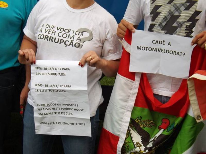18/11/2013 Depois de ser adiado há uma semana devido ao mau tempo, foi realizado no final da tarde desta segunda-feira (18) uma manifestação pacífica em frente à prefeitura de Herval d' Oeste e da Câmara de Vereadores. A intenção dos organizadores foi protestar contra o que eles consideram incoerências e falta de informações à população. A participação dos manifestantes foi bastante tímida. Entre os tópicos estão o índice do pagamento de funcionários da prefeitura que extrapolou em 63% do limite máximo imposto pela Lei de Responsabilidade Fiscal, a contratação de sete novos funcionários mesmo com o inchaço da folha de pagamento, a chamada Lei do IPTU que aumentou os valores dos imóveis no município e a não construção de 100 casas populares. Conforme a moradora Elisabeth Vieira, ao contrário do que podem imaginar os representantes políticos esses assuntos não caíram no esquecimento da população. “A manifestação é uma resposta ao que vem acontecendo no município”, explica. Ela comenta que em relação à folha, ao invés de a administração tentar reajustar o índice foram feitas novas contratações de funcionários. “Se são legais ou não é uma outra questão, a população não está entendendo, então seria bom que o prefeito viesse a público para esclarecer isso”. Conforme Elisabeth em relação à lei do IPTU ficou vago no ar as manifestação dos vereadores que eles iriam representar junto ao Ministério Público por verificar pontos inconstitucionais no texto e até o momento não houve nenhuma sinalização. “A população está esperando uma resposta tanto dos vereadores quanto do prefeito que afirmou que não iria revogar a lei, os vereadores disseram que iriam fazer alguma coisa se os prefeito não derrubasse a lei, e até agora não foi feito nada”, questiona. Outro ponto a ser explorado no protesto é a não construção de 100 casas populares em Herval d' Oeste. O município não firmou contrato para a execução do conjunto habitacional alegando não contar com recursos para a contrapartida. “Não está explicado, fizeram uma propaganda, fotografaram, deixaram a população na expectativa, se você for hoje no bairro São Jorge as pessoas estão indignadas porque eles contavam com 100 casas populares que representam a mudança de 100 famílias”. Para Elisabeth Vieira, se tinha previsão de não acontecer que os moradores fossem avisado antes. “As coisas acontecem depois as pessoas são pegas de surpresa”, resume. A manifestação iniciou às 18 horas e atingiu os Poderes Executivo e Legislativo, que funcionam no mesmo prédio.
