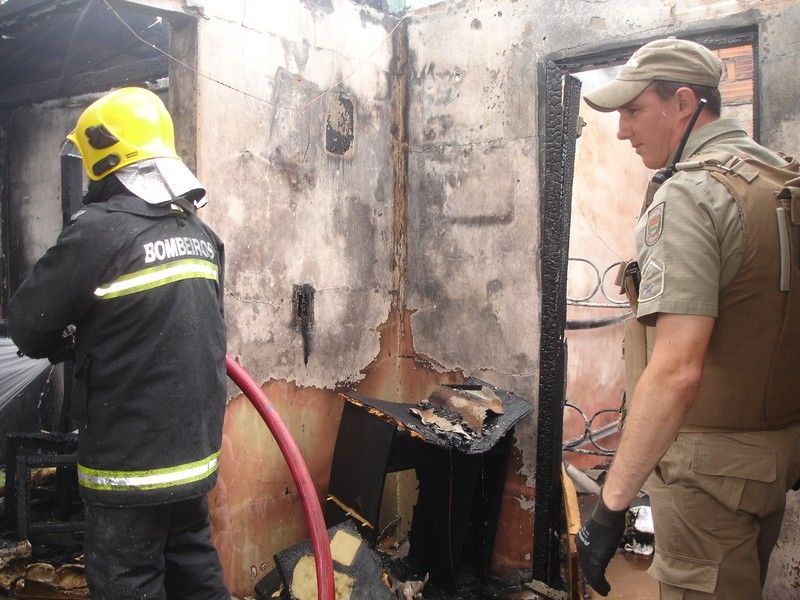 02/12/2013 Um incêndio de grandes proporções destruiu uma casa no início da tarde desta segunda-feira (02) no bairro Vila Rica em Herval d’Oeste. O acidente aconteceu por volta das 14h30 na rua Joinvile, número 482, próximo ao Ginásio Oscarzão. Vizinhos acionaram o Corpo de Bombeiros, mas quando as viaturas chegaram ao local as chamas já haviam tomado conta do imóvel. Os bombeiros fizeram o trabalho de rescaldo para evitar que o fogo atingisse residências vizinhas. De acordo com populares, uma mulher de 40 anos, que tem problemas mentais e que mora na casa com a mãe e mais um irmão, pode ter provocado o incêndio de forma acidental. Ela foi vista saindo as pressas da casa com algumas sacolas de roupa. O caso está sendo encaminhado a Polícia Civil. A família perdeu todos os móveis e objetos.