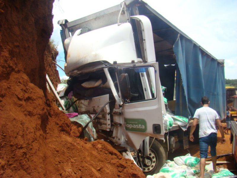 22/01/2014 Dois homens que estavam em um caminhão sobreviveram milagrosamente após colidirem violentamente o veículo contra um barranco. O acidente ocorreu por volta das 13h15 desta quarta-feira (22) na SC-452 em Água Doce, em frente ao frigorífico Dri, distante 1 km do trevo de acesso a Catanduvas. Rosemir Tibes Vieira, de 37 anos, conduzia um caminhão com placas de Videira da empresa Sopasta. Ele tinha na carona Cristiano Araújo, de 25 anos. Vieira transportava ração para suínos. Ele saiu de Chapecó e se dirigia a Tangará. Próximo ao trevo de acesso a Água Doce, o veículo ficou sem freios. Desgovernado ele saiu da pista e invadiu uma terraplanagem em alta velocidade até se chocar violentamente contra um barranco. Funcionários que trabalhavam no local presenciaram a batida. Fábio Viecelli, funcionário do frigorífico Dri, relatou a Rádio Catarinense que ouviu os dois ocupantes gritando incessantemente antes da colisão. O impacto da colisão destruiu a cabine do caminhão. Vieira e Araújo ficaram presos nas ferragens. O Corpo de Bombeiros de Água Doce foi acionado e removeu as vítimas, que milagrosamente sobreviveram. Eles tiveram apenas ferimentos leves, foram conduzidos ao hospital municipal de Água Doce sem suspeita de fraturas. Os próprios bombeiros ficaram impressionados com a situação. Uma escavadeira que trabalhava no local ajudou a remover a cabine que ficou prensada no barranco. Rodrigo Dri, sócio-proprietário do estabelecimento, disse que a empresa está fazendo a limpeza do terreno à beira da rodovia para ampliar o estacionamento.