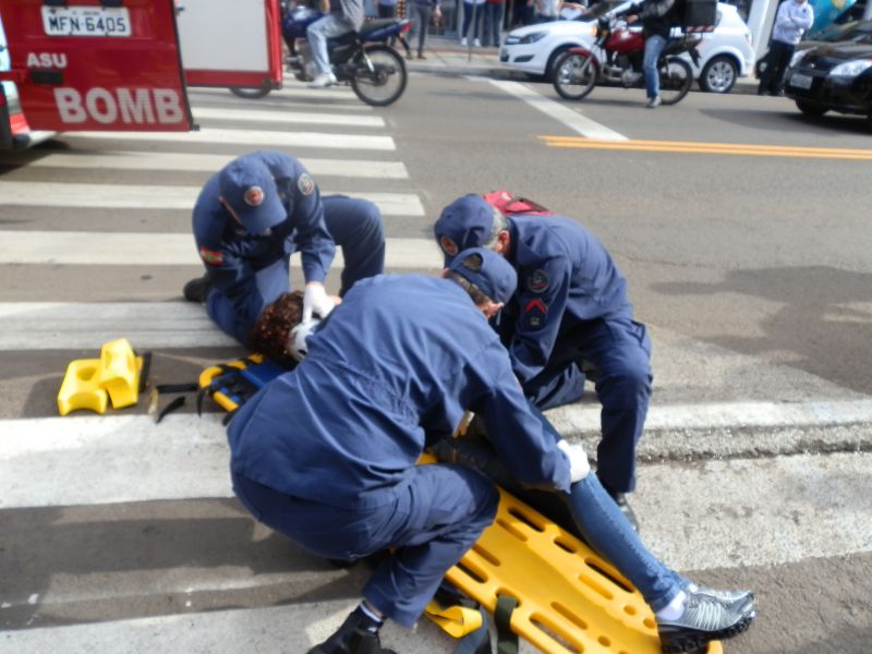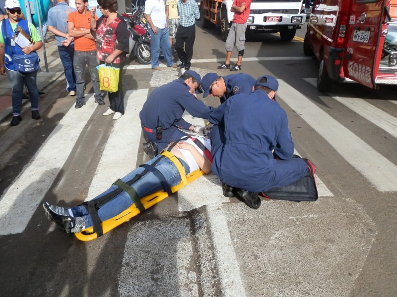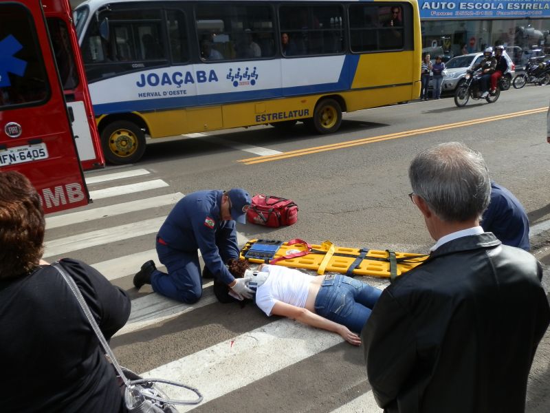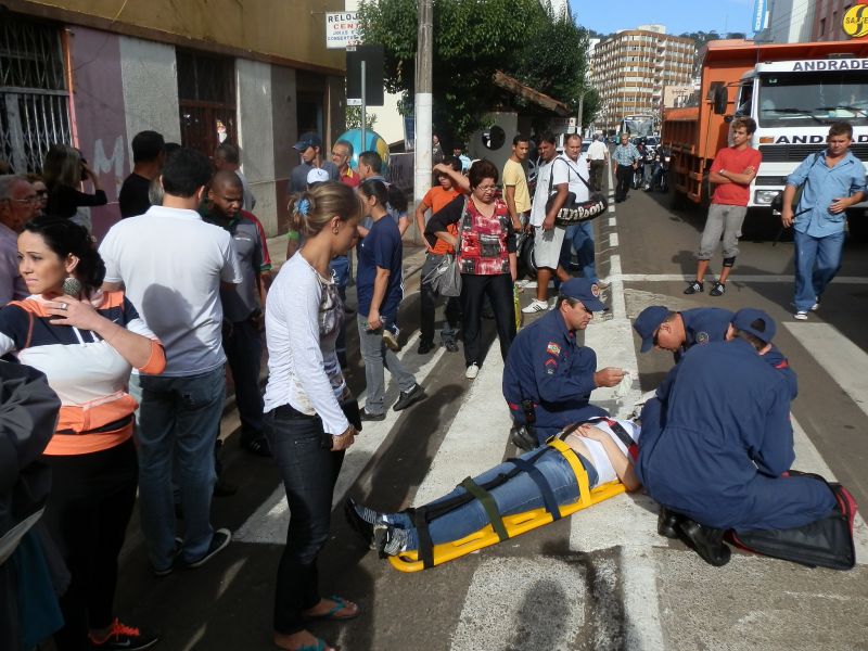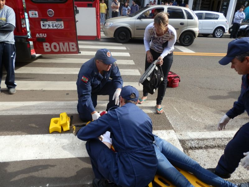 09/04/2012 Uma mulher foi atropelada na faixa de pedestre na manhã desta segunda-feira (09) no centro de Joaçaba. O fato aconteceu por volta das 09h na avenida XV de Novembro. O atropelamento envolveu o Ford Ka placas MCB-2540 de Joaçaba, conduzido por C.G.P. A vítima, de iniciais J.M., 41 anos, foi atendida pelos bombeiros e conduzida ao Hospital Universitário Santa Terezinha para avaliação médica. Ela apresentava corte na cabeça, rosto e suspeita de lesão na coluna.