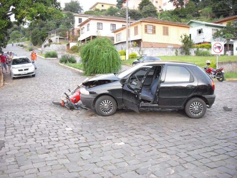 10/04/2012 O acidente foi registrado por volta das 17h30min desta segunda-feira (09) na rua Dário Fontana na esquina com a rua Carlos Dreyer na área central da cidade. De acordo com a Polícia Militar, a moto CG-125, placas de Luzerna, conduzida por Valdecir Botcher, 29 anos, colidiu de frente com o Fiat Pálio, placas LZA-0795 de Ibicaré, conduzido por um homem de iniciais J.D., 60 anos, que também reside em Luzerna.