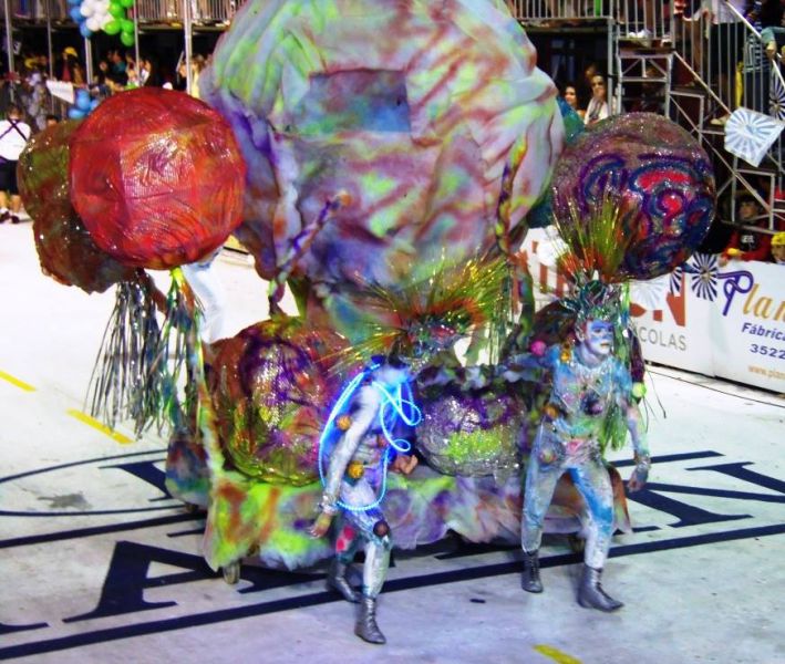 02/03/2014 A comissão de frente da azul e branco inovou. Tradicionalmente composta por homens, nesse ano se tornou mista e na vestimenta destaque para artefatos de led. O mesmo detalhe foi usado na fantasia do primeiro casal de mestre-sala e porta-bandeira Analiê Pasquali e Vladimir Vieira.