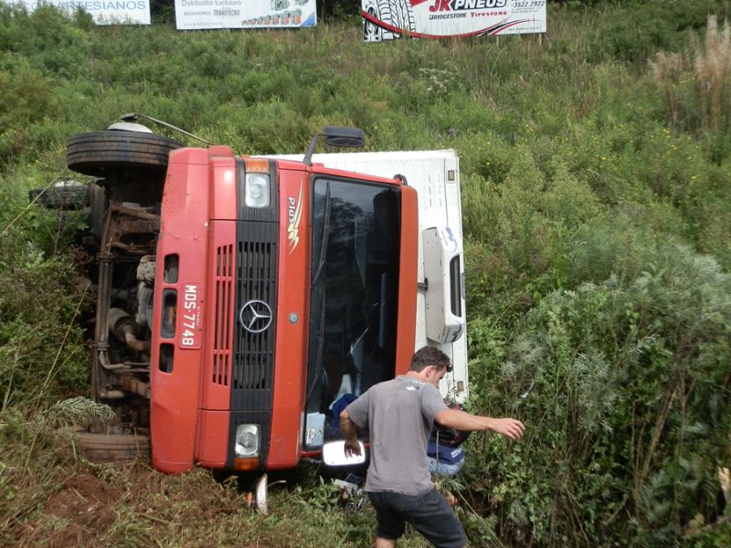 11/03/2014 Um caminhão com placas de Palhoça (SC) tombou na BR-282 em Joaçaba. O acidente aconteceu na tarde desta terça-feira (11) por volta das 15h próximo ao Centro de Promoções (CPJ). O motorista Sérgio Schmidt, 26 anos, relatou a Rádio Catarinense que perdeu o controle do veículo numa curva. Ele e mais o carona, de 20 anos, sofreram apenas ferimentos leves. O caminhão deslocava-se no sentido Chapecó a Florianópolis e estava vazio.