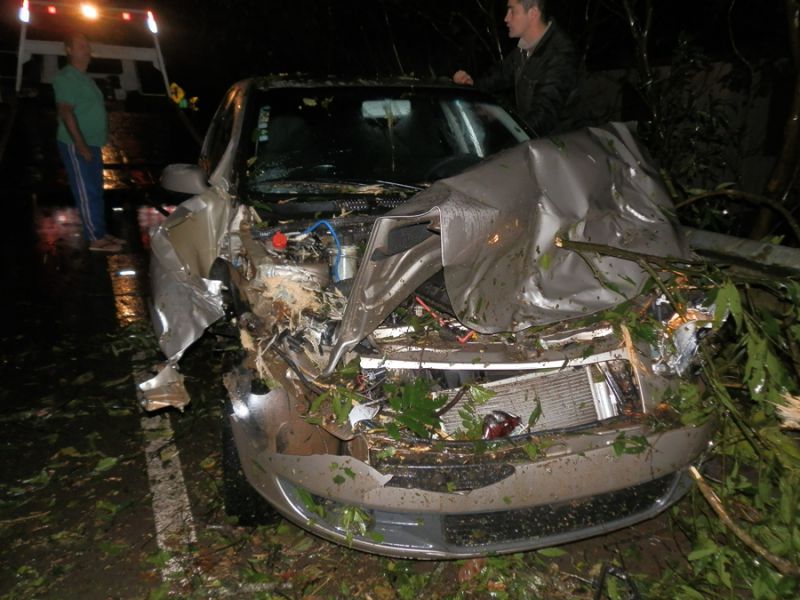 27/06/2014 Uma queda de barreira na madrugada desta sexta-feira (27) por muito pouco não terminou em tragédia na rodovia entre Joaçaba e Lacerdópolis. A barreira caiu por volta das 03h30 e atingiu um veículo Siena com placas de Lacerdópolis. O morador de Catanduvas, de 40 anos, estava se deslocando para Lacerdópolis para auxiliar familiares, vítimas da enchente. Uma árvore de grande porte atingiu o veículo na parte da frente, destruindo praticamente o mesmo. Em seguida ocorreu um grande deslizamento de terra. O motorista conseguiu escapar ileso. O veículo foi retirado do meio dos entulhos com auxílio de um guincho. A rodovia está totalmente interditada neste ponto e a remoção do material deverá levar horas.