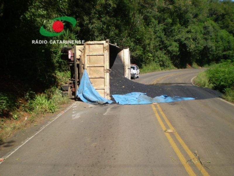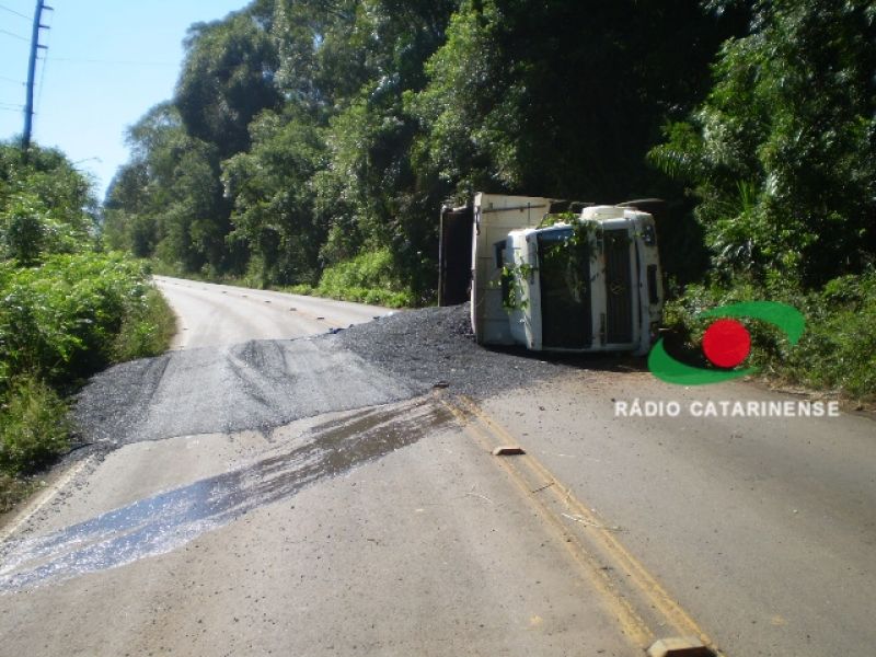 19/04/2012 Um caminhão basculante carregado com asfalto tombou na manhã desta quarta-feira na SC-303 em Piratuba. O acidente aconteceu por volta das 10h30min na SC-303, na comunidade de Linha Serraria, próximo ao trevo de acesso à Usina Hidrelétrica Machadinho.