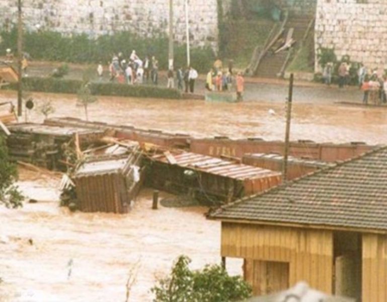 07/07/2014 “Só quem passou sabe o que foi aquela enchente”. Esta frase mencionada pelo comunicador Elmir Bender na sala de Redação da Catarinense nesta segunda-feira (07) revela o drama ainda na memória da famosa e trágica enchente de 1983 que deixou um rastro de destruição histórico nos municípios do Vale do Rio do Peixe. No dia 07 de julho, há exatos 31 anos, o Rio transbordou saindo da caixa normal em vários pontos, alagando cidades, desalojando famílias e mostrando para a população a fúria da natureza. O rio em Joaçaba e Herval d’Oeste passou dos 14 metros, derrubou pontes, arrastou vagões e locomotivas que estavam na Rede Ferroviária em Herval d’Oeste. A chuva durou cerca de 1 semana, sendo que a maior intensidade se concentrou em três dias. Um vídeo do historiador Markson Kielek, publicado no Youtube, mostra a enchente e suas consequências.