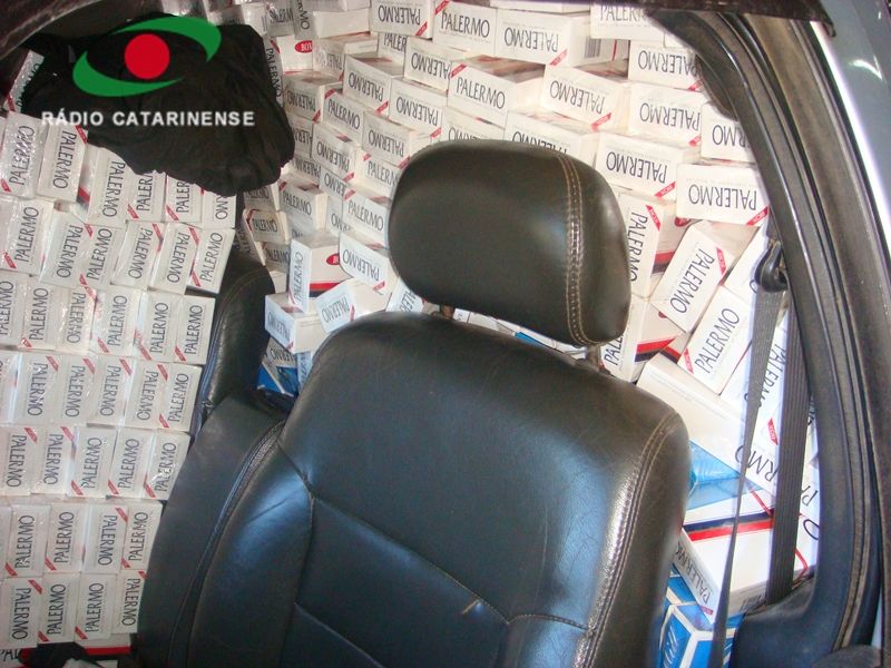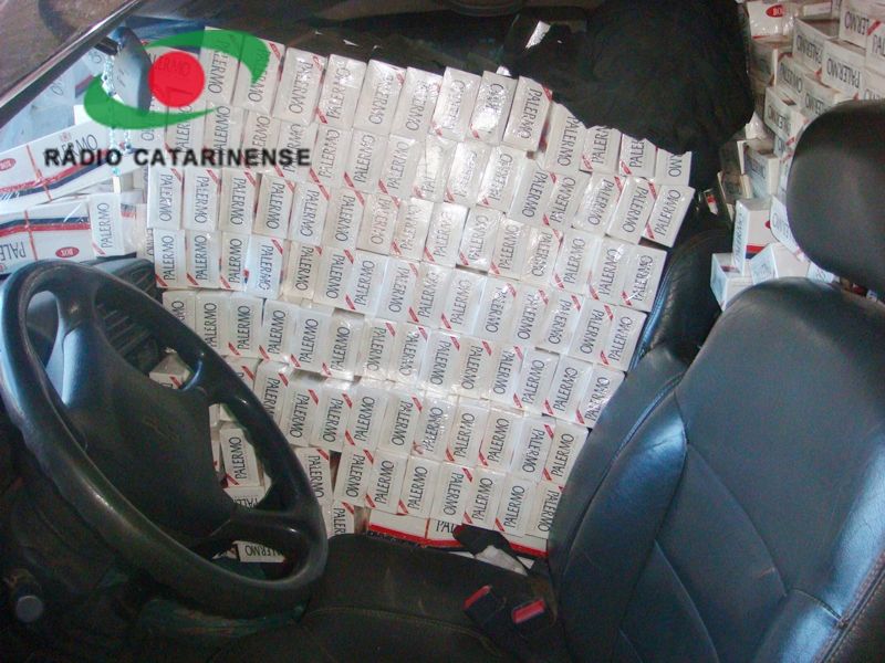 23/04/2012 Policiais Rodoviários Federais, que participam da Operação Sentinela no Meio-Oeste, flagraram na noite de sexta-feira (20) uma S-10 carregada com 2.400 maços de cigarros. Os maços estavam na caçamba e no interior do veículo onde só tinha lugar para o motorista, pois todos os espaços foram ocupados. A carga, avaliada em cerca de R$ 20 mil, havia sido comprada no Paraguai e estava sendo levada para o município de Lages. O caso foi encaminhado para a Receita Federal.