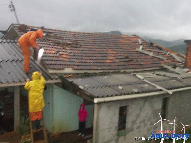 02/09/2014 A tarde desta terça-feira (2) foi de muito trabalho para os integrantes do Corpo de Bombeiros Militar de Água Doce, pois algumas ocorrências foram registradas de destelhando de casas e queda de algumas árvores em via pública. Os membros do Corpo de Bombeiro realizaram um serviço de atendimento as pessoas que foram atingidas nas ocorrências, juntamente com a Defesa Civil do município, na tentativa de amenizar a situação. Algumas pessoas ficaram assustadas com o vendaval que passou pela cidade de Água Doce.