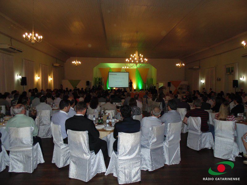 11/09/2014 Em noite especial, com o Clube Cruzeiro lotado, a Associação Comercial e Industrial do Oeste Catarinense (ACIOC) comemorou nesta quarta-feira (10) os seus 74 anos de fundação da entidade. Acioc que tem como missão: “Criar valor para os associados e para a sociedade, estimular o desenvolvimento das pessoas e fomentar melhorias de infraestrutura para Joaçaba e região”.Como uma das formas de criar valor a seus associados, a Acioc oferece constantemente palestras gratuitas. Também é tradição da entidade comemorar seu aniversário de fundação com eventos através dos quais os associados e a comunidade possam aperfeiçoar o conhecimento em gestão.