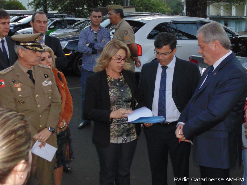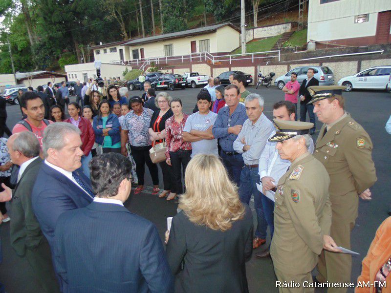 16/09/2014 Aproveitando a solenidade de inauguração da Central Regional de Emergências (CRE) que aconteceu no final da tarde desta terça-feira (16) no município de Herval d´Oeste, moradores do bairro Sebaldo Kunz, acompanhados pela prefeita de Catanduvas, Gisa Giacomin e por alguns vereadores estiveram reunidos com o secretário estadual da Segurança Pública, César Grubba e o comandante geral da Polícia Militar, coronel Valdemir Cabral, reclamando da falta de segurança na cidade de Catanduvas.