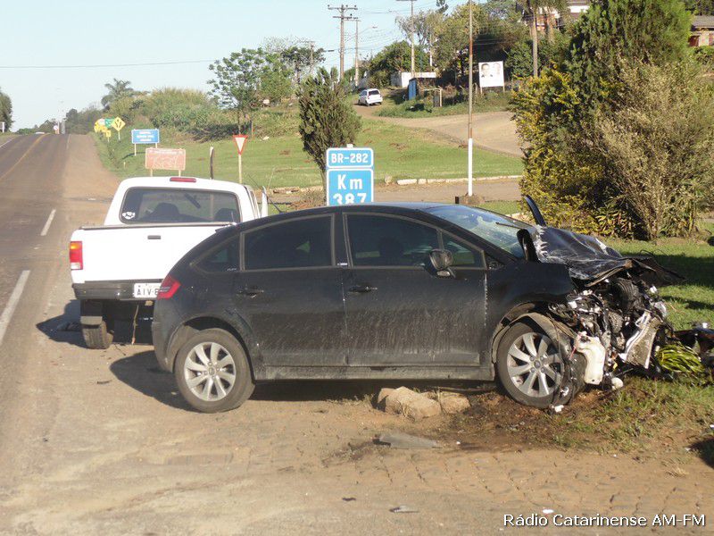 22/09/2014 Por volta das 16h desta segunda-feira (22), uma colisão entre dois veículos foi registrada na BR-282, proximidades do posto São Cristovão na Cidade Alta de Joaçaba. Se envolveram neste acidente um automóvel Citroen C4 placas MMB-3311 de Blumenau conduzido por V.F.S. de 30 anos, e a camionete Ranger placas AIV-8670 de Joaçaba, cujo motorista não foi identificado por ter sido levado às pressas ao Hospital Universitário Santa Terezinha (HUST) de Joaçaba.