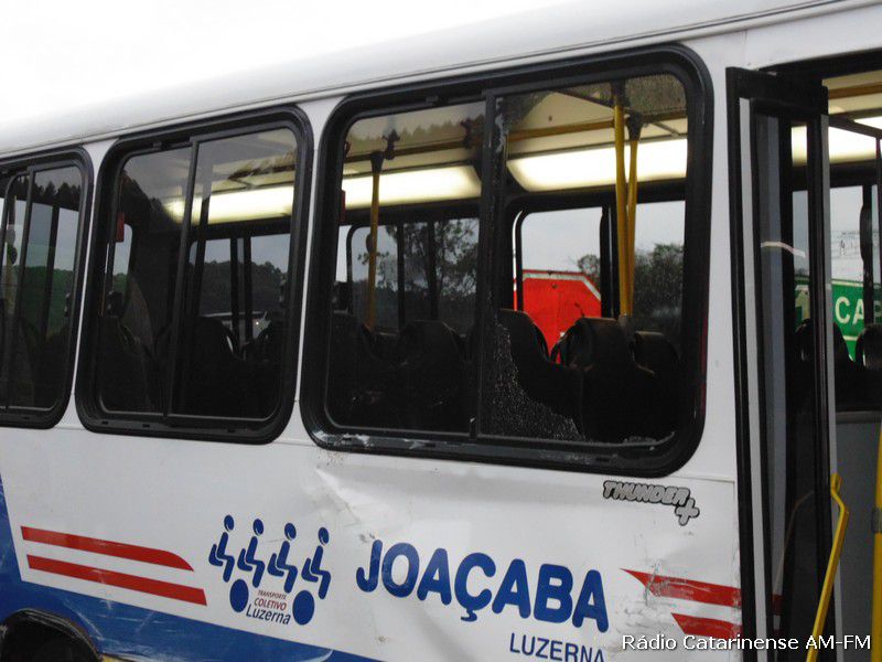 26/09/2014 Por volta das 17h desta sexta-feira (26), mais um acidente foi registrado no trevo do Chocodinho que dá acesso ao município de Joaçaba. Desta vez a colisão foi entre um caminhão com placas de São Domingos (SC) e um ônibus escolar com 14 crianças que estavam retornando do Senai.