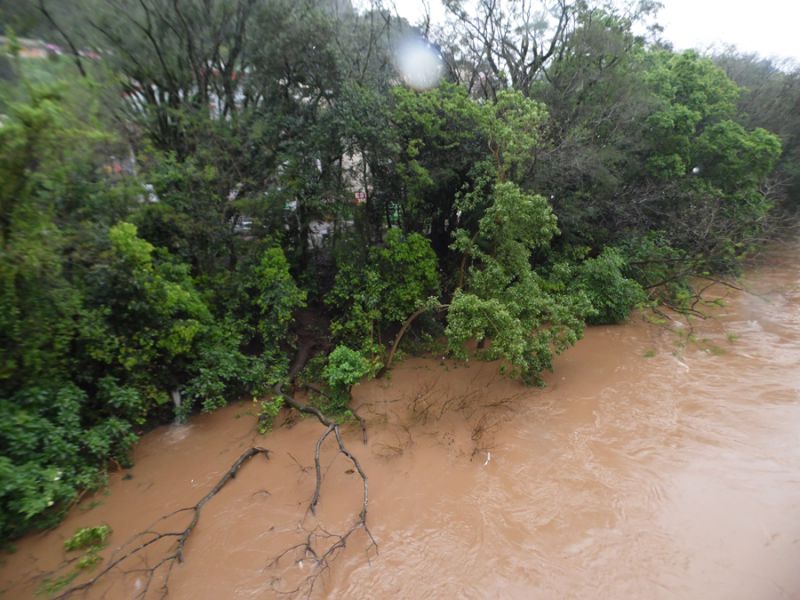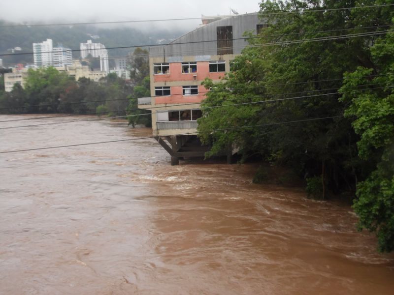 30/09/2014 A chuva intensa das últimas horas, em praticamente todas as regiões de SC, provocou a elevação dos rios. No Meio-Oeste o Rio do Peixe chegou a marca dos 7 metros e 40 centímetros por volta das 20hs desta segunda-feira deixando os moradores ribeirinhos em estado de alerta. O nível começou baixar depois das 22hs. Na última medição, realizada pelo SIMAE às 11hs da manhã desta terça-feira (30), na Estação de Captação da Avenida Caetano Natal Branco, o rio estava com 6 metros e 48 centímetros. A cota de alerta para enchente é de 8 metros.