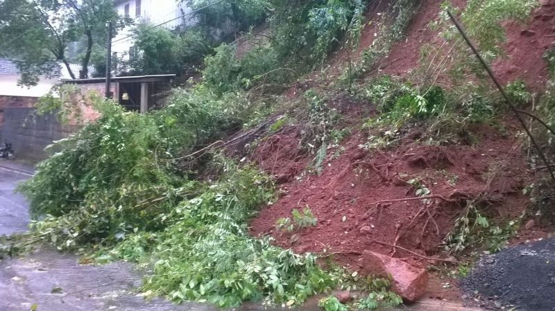 30/09/2014 Um deslizamento de terra interditou parcialmente a rua Carlos Gomes no centro do município de Herval d’Oeste na manhã desta terça-feira (30). Com o volume excessivo de água, em razão da chuva, a terra se deslocou da encosta e invadiu a rua deixando o trânsito em meia pista. A Secretaria de Obras foi acionada no final da manhã para fazer a remoção da terra, pedras e árvores. O trabalho já está sendo executado na altura do número 250. O terreno era baldio e nenhuma casa foi atingida.