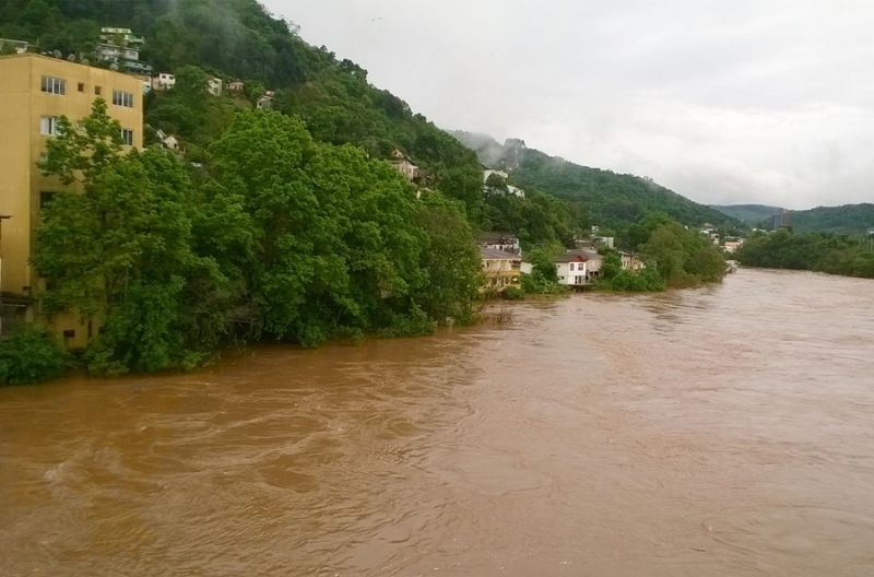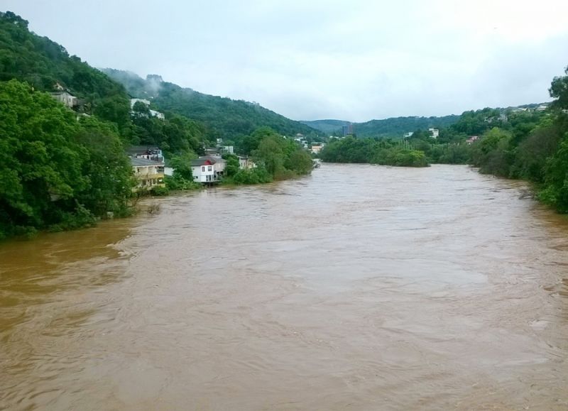 30/09/2014 O nível do Rio do Peixe voltou a subir nas últimas horas em Joaçaba. Na última medição realizada pelo Serviço Intermunicipal de Água e Esgoto (SIMAE), às 15hs, o nível estava em 7 metros e 29 centímetros. O nível mais elevado, em razão das chuvas registradas desde o final de semana, foi atingido na noite de ontem por volta das 19hs com a marca nos 7 metros e 40 centímetros. O alerta para enchente é considerado a partir dos 8 metros. As fotos feitas pela Rádio Catarinense por volta das 14h30 mostram o Rio do Peixe. As fotos foram feitas a partir da ponte que liga os municípios de Joaçaba e Herval d’Oeste. A chuva deverá persistir até a noite de hoje. A partir de amanhã as condições meteorológicas indicam tempo bom.