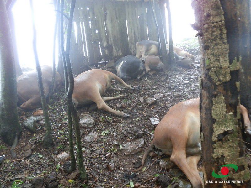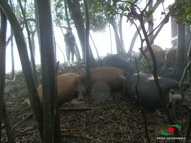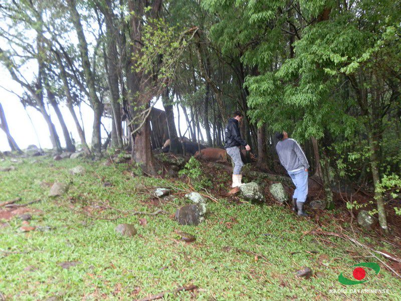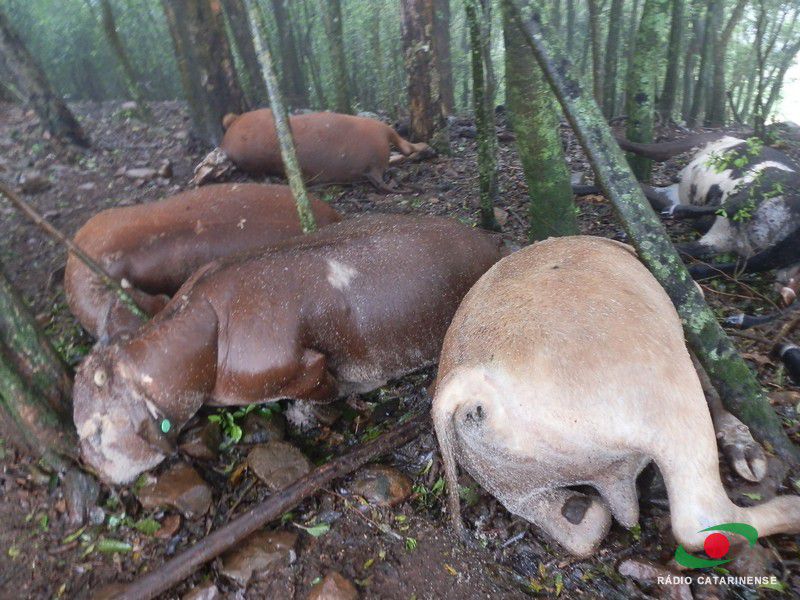 30/09/2014 A força da natureza pode ter deixado um rastro de destruição e uma cena desoladora para o proprietário de um sítio localizado no interior do município de Erval Velho. Um raio é suspeito de ter provocado a morte de 12 bovinos que estavam se protegendo num pequeno capão. O proprietário Sérgio Luiz De Sordi não soube precisar quando teria ocorrido o fato. Na manhã desta terça-feira (30) ele percebeu que seu rebanho havia diminuído. Após realizar buscas pela propriedade ele acabou se surpreendendo com a cena ao encontrar os animais mortos em baixo de árvores. Um médico veterinário foi acionado para realizar uma perícia e apontar a causa da morte dos animais. O prejuízo é superior a R$ 15 mil. Suspeita-se que eles tenham morrido a alguns dias em razão do estado adiantado de decomposição. A tese de raio ganha força em razão de uma verdadeira cratera aberta próxima do local onde estavam os animais.