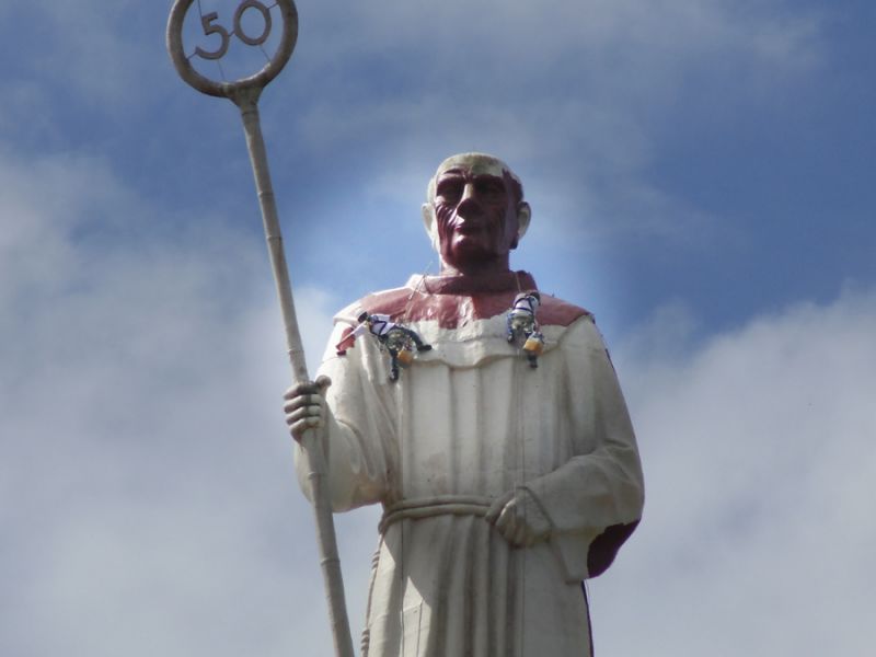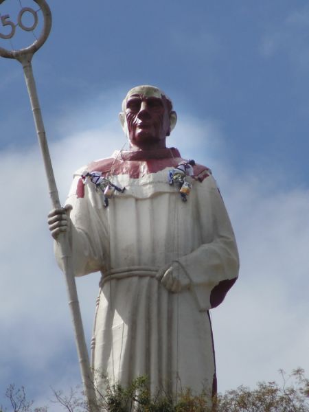 07/10/2014 A obra de revitalização do Monumento Frei Bruno prossegue dentro do cronograma de trabalho definido pela empresa Tecnoeste em conjunto com a Câmara de Dirigentes Lojistas (CDL). Dois funcionários da empresa, com uso de equipamentos especiais, já iniciaram a etapa de pintura da estátua. A pintura iniciou após a lavação e remoção da sujeira que se acumulava em grande quantidade. A empresa está aplicando um fundo com pigmentação escura e em seguida vai aplicar uma tinta branca com alta durabilidade, segundo informou o diretor da Tecnoeste Gilmar Vedvotto.