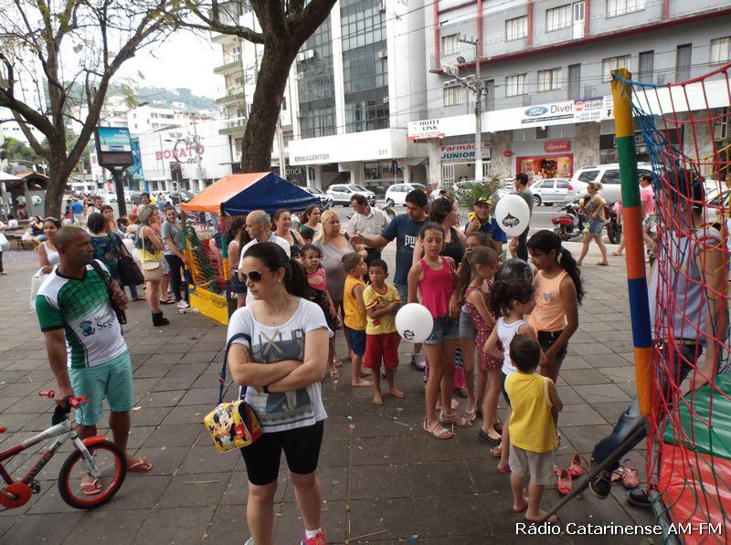 Para marcar a data e trazer a população para visitar as lojas, a Câmara de Dirigentes Lojistas (CDL) realizou durante todo o dia defronte a praça Adolfo Konder, em parceria com mais de 20 entidades, um dia voltado para as crianças. Brincadeiras, apresentações musicais, pintura facial, além da distribuição gratuita de pipoca e algodão doce fizeram parte da programação no período da tarde.