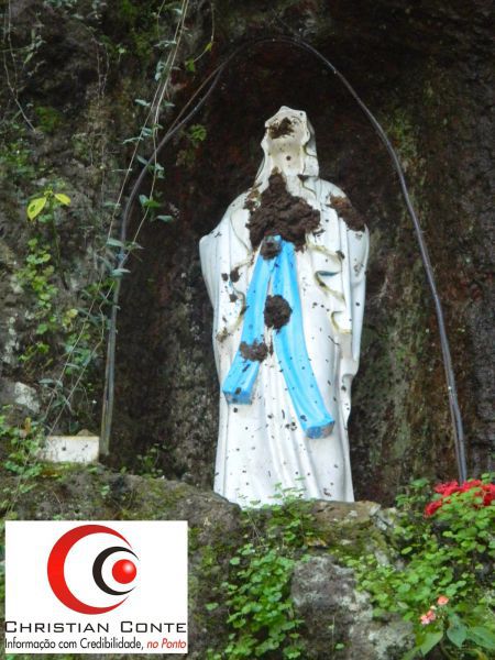 14/10/2014 Na madrugada desta terça-feira (14), vândalos sujaram imagens sacras na Gruta Nossa Senhora de Lourdes, localizada às margens da BR-282 em Erval Velho. Ao chegar no local pela manhã, a pessoa responsável pela limpeza do ambiente, encontrou a imagem de Nossa Senhora de Lourdes e Santa Bernadete tomadas por barro. De acordo com informações repassadas pelo pároco Odirlei Luiz Poltronieri, este já é o terceiro ato de vandalismo registrado no local.
