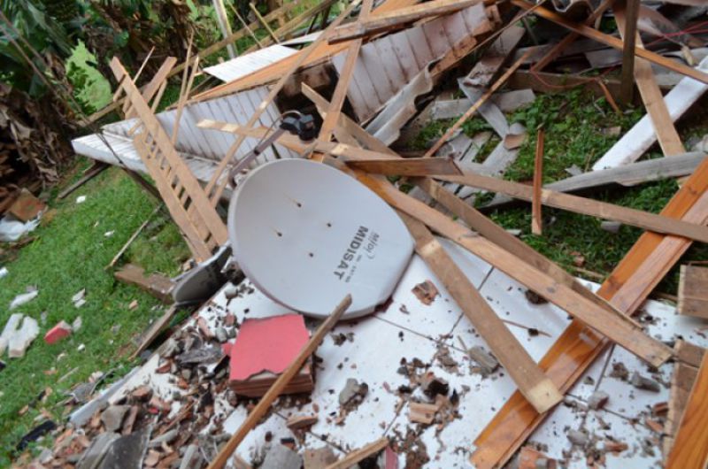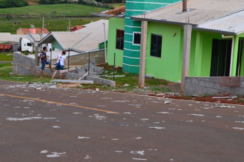 17/10/2014 O forte vento nesta quinta-fdeira (16), teve início por volta das 16h, e em pouco mais de meia hora diversas casas dos municípios de Capinzal e Ouro foram destelhadas. Árvores e diversos galhos caíram sobre a rede elétrica interrompendo o fornecimento de energia. A reportagem da Rádio Capinzal esteve em alguns dos principais pontos atingidos. A princípio apenas foram registrados danos matérias. No município de Ouro o local mais atingido foi uma residência na Vila São José. Grande parte do telhado foi arrancado. Não havia ninguém na hora do sinistro.