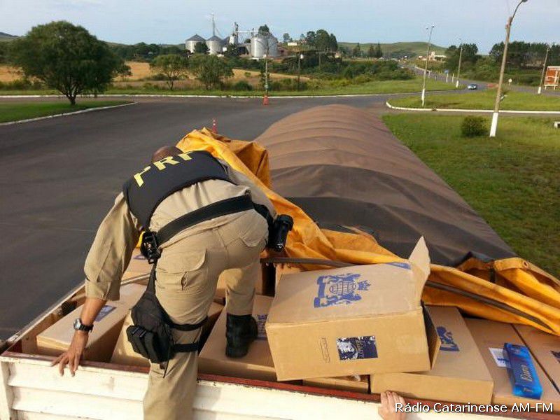 01/11/2014 Na madrugada deste sábado (1º) o serviço da Inteligência da Polícia Rodoviária Federal e Polícia Militar do município de Concórdia, realizaram apreensão de uma grande quantidade de cigarros vindos do Paraguai. Os policiais abordaram dois veículos batedores e um caminhão na cidade de Água Doce na BR 153, divisa com o estado do Paraná e flagraram na oportunidade, o veículo carregado de cigarros contrabandeados.